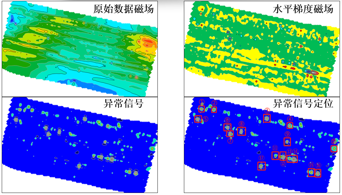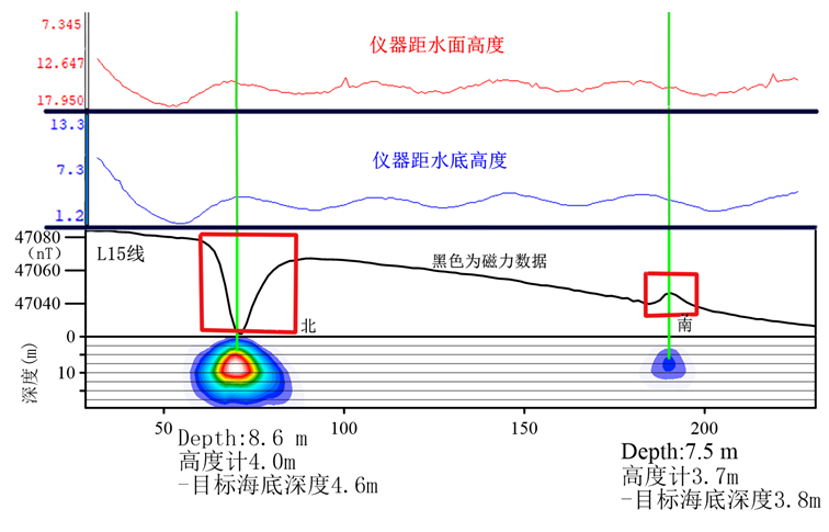4)相较于单个磁力仪,海洋磁力梯度仪对小型目标物的磁信号反应更加敏感。
