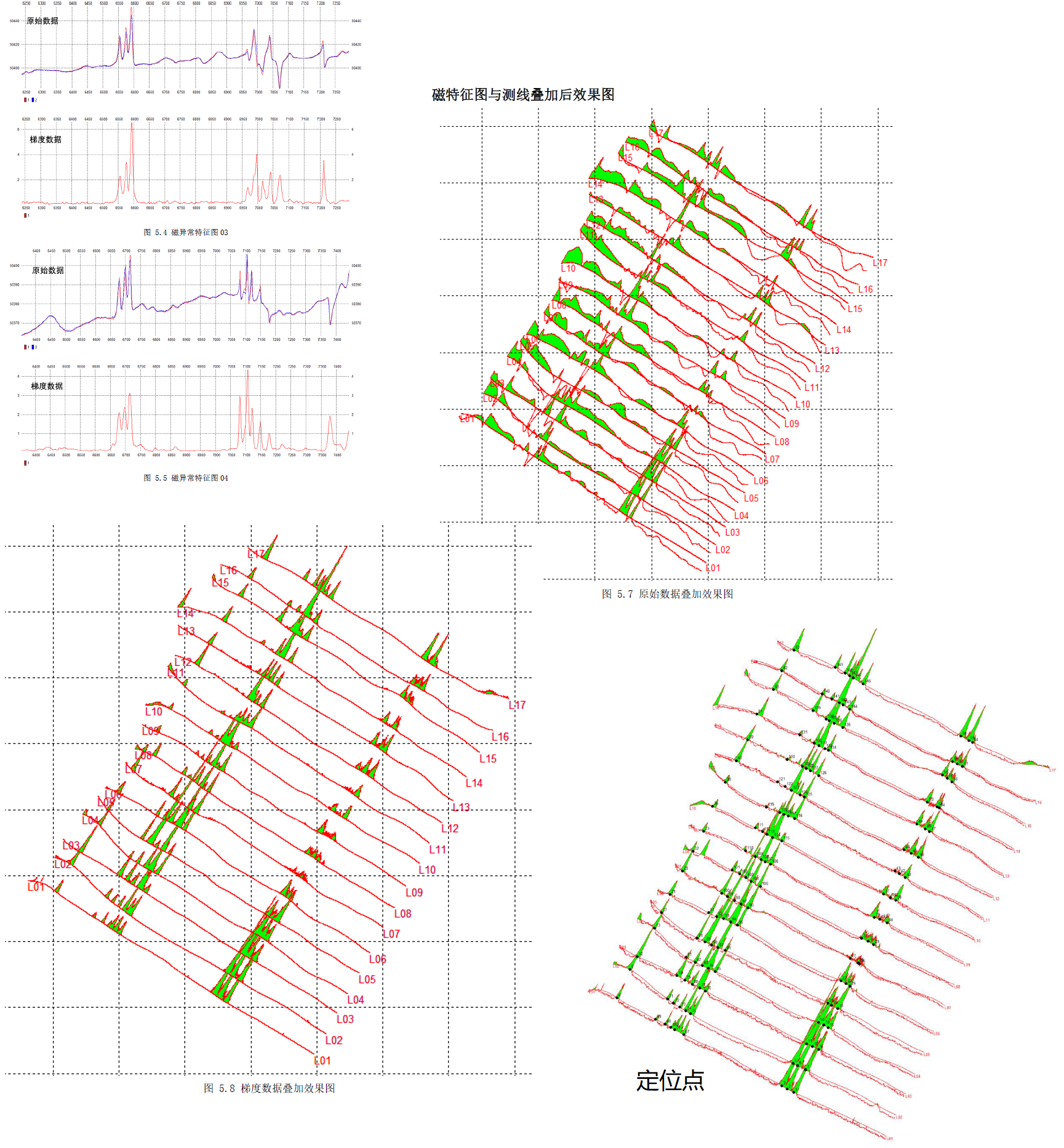 从磁力数据剖面图中可以明显看出异常数值。从梯度值剖面图中可以看出,两台仪器在无异常点时数值仅差0.1左右,数值在有异常点时两台仪器会出现明显差值。