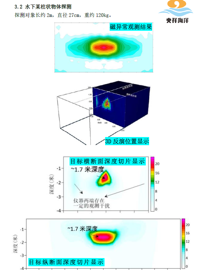 1)使用磁力梯度仪对水中埋藏线缆(线缆直径约10cm)进行探测。