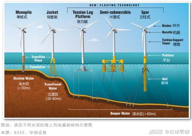 浅水一般采用固定式基础,比如单桩或者导管架方式。