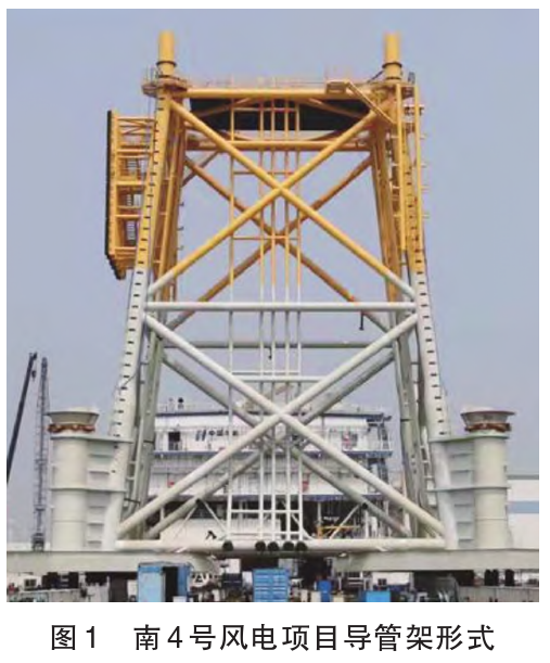 导管架高度约47 m,总质 量约1 450 t。4根桩管长70 m,入泥57.2 m。钢 桩直径2 360 mm,壁厚40~60 mm,设计入泥深度 57.7 m,桩长70.65 m。