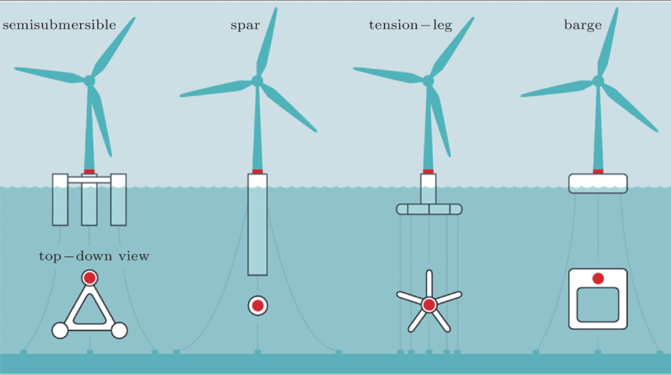 深水一般采用漂浮式,比如半潜式、立柱式、驳船式和张力腿式四种。截至2024年10月,建成漂浮式风电项目的基础形式主要是立柱式和半潜式,占比均超过 40%;而在建项目主要是半潜式,比重超过 70%,表明当前半潜式基础越来越受到关注。