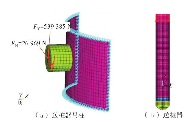 本项目桩顶标高位于水下17 m,采用替打段形式桩锤能量损耗过大,不能满足沉桩要求并且 需对替打段进行水下切除,切割过程需要浮吊船组配合,因此导致工期长且成本高。为解决上述 问题,设计送桩器进行辅助打桩,既满足打桩能力,又避免桩锤入水。
