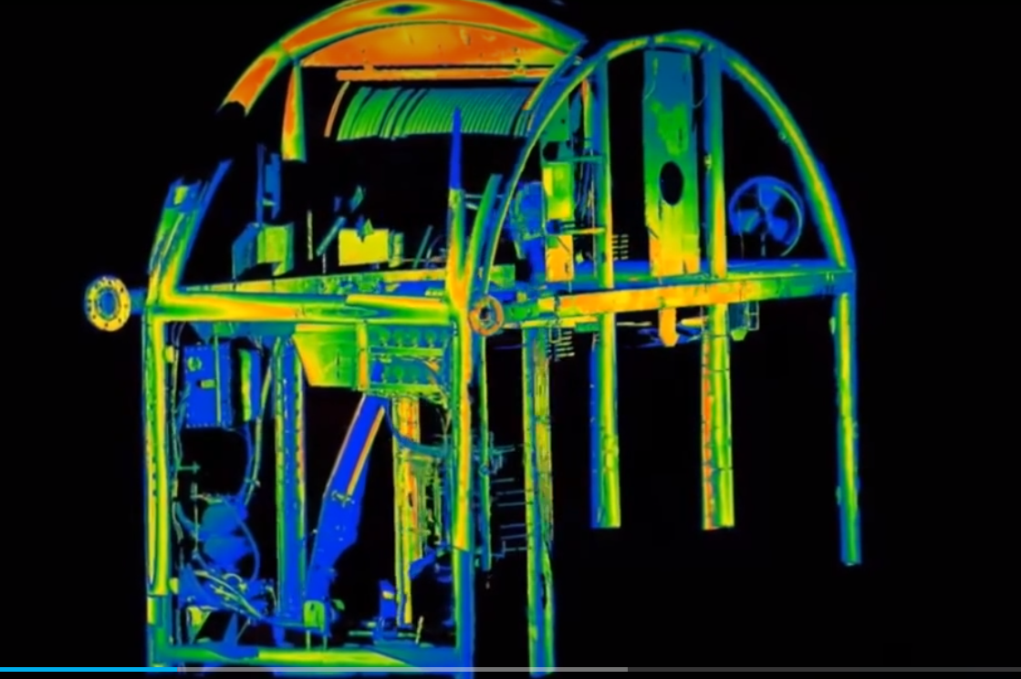 传统激光成像原理是先发射一束很强的脉冲(激光线),然后获得脉冲的全波形,对波形进行分解,识别特征位置(比如图中的A、B),生成点云。下图是ULS-500激光扫描仪工作图。