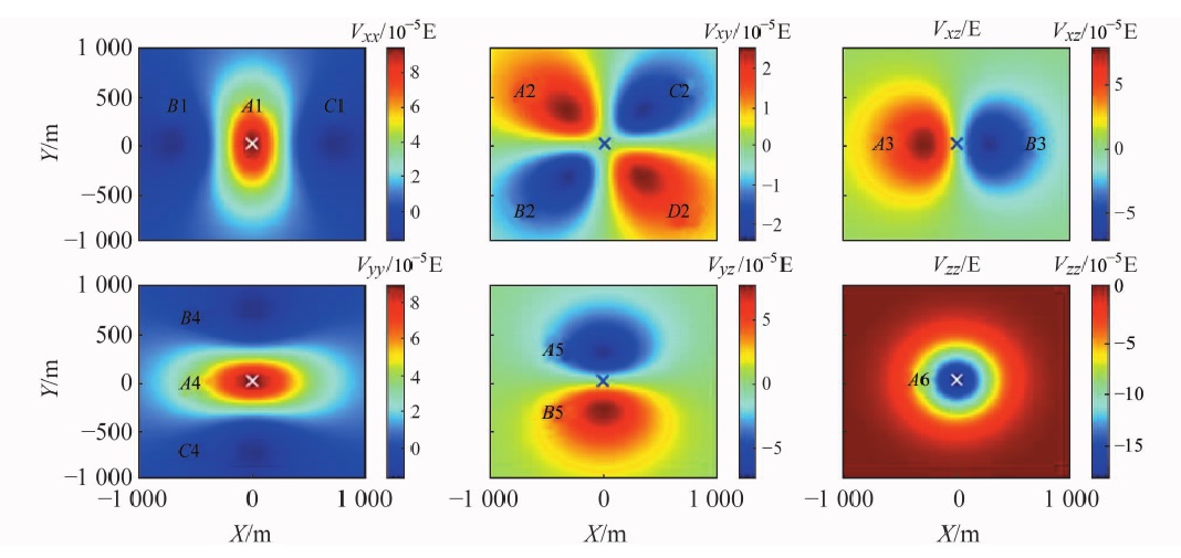 其上方600m处的重力梯度图见下图.