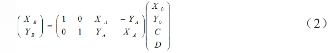 其中,(XB,YB)表示转换后的坐标,(XA,YA)表示转换前的坐标,m为尺度缩放系数,α为旋转系数。令C=mcosα,D=msinα,则有下式: