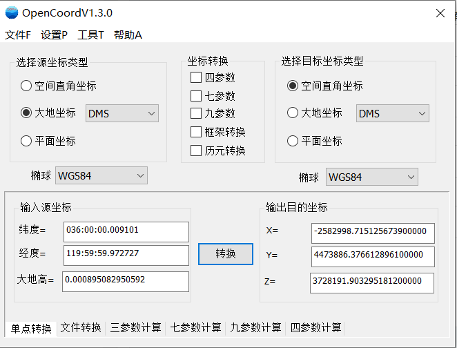 两个转换后的空间直角坐标小数点后四位是一样的。